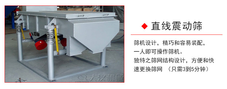 直線震動篩 采用雙振動電機驅動原理,通過兩臺電機同步反向旋轉產生的激振力,使物料在篩面上呈現跳躍式直線前進運動。該設備篩分目數范圍較寬,通常可覆蓋2目至400目,能夠對干式粉狀或顆粒狀物料進行有效分級與除雜。在產量表現上,其處理能力隨篩面尺寸增大而提升,標準型號每小時產量可從0.12噸覆蓋至20噸,特別適合對產量有較高要求的連續化流水線作業。