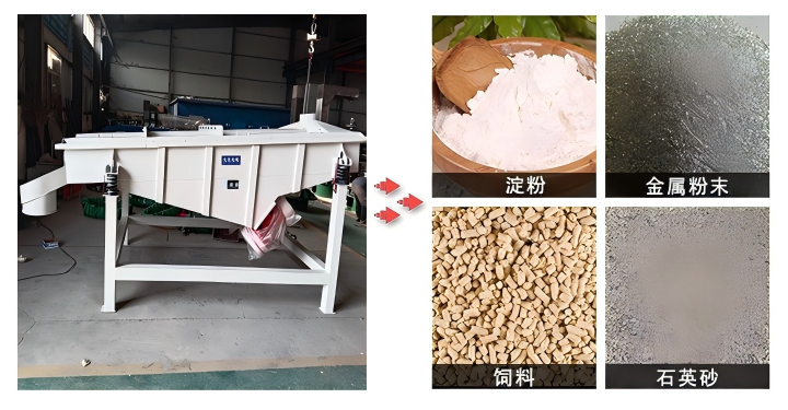 直線震動篩主要針對干式粉狀與顆粒狀散料進行篩選。其篩分范圍覆蓋廣泛,從粗顆粒如石英砂、塑料顆粒,到細粉末如面粉、金屬粉、化工原料等均能有效處理。對于具有一定流動性的濕式物料,如含水量適中的礦粉或漿料,設備通過調整傾角與激振力亦可實現固液分離或脫水作業。此外,該設備對輕質物料如木屑、活性炭,以及重質物料如金屬礦渣、磨料等不同比重特性的散料均具備良好的分級與除雜能力。