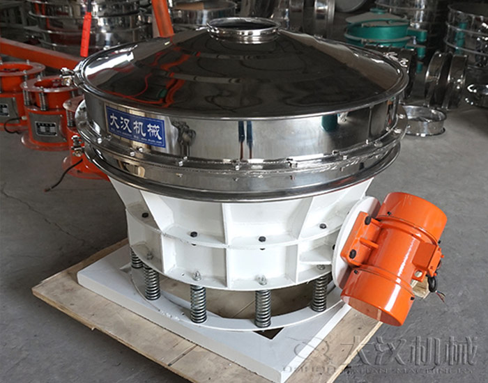 直排篩由進料口、防塵蓋、電機、彈簧、出料口組成。兩臺型號相同的振動電機對稱安裝在篩機兩側,振動電機上、下端裝有偏心重錘,通過改變上下偏心塊的相位角和重量,可以改變激振力的大小和物料的運動軌跡,進而達到篩分各種物料的目的。