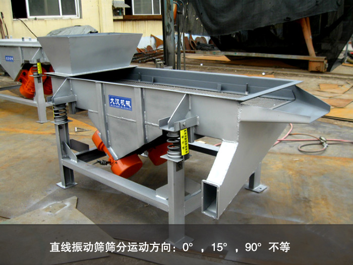 直線振動篩為了保障其物料的篩分效果,所以會有不同形式的篩分運動方向:0°,15°,90°不等。每個運動方向會有不同的作用,0°可以用于一般的篩分,15°可用于精密篩分,用于微分高凝聚力的原料或含水率高的原料分級,90°則是除去原料中的異物,用于濕法分級。